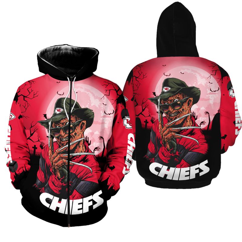 Kansas City Chiefs A Nightmare On Elm Street Halloween Hoodie Zip Up Hoodie Fleece Nla024610