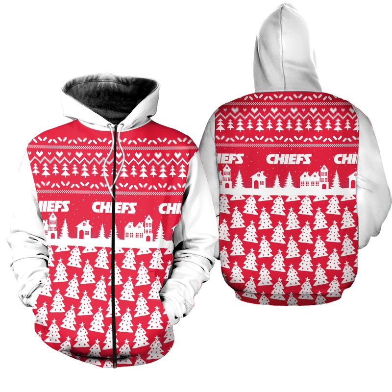 Kansas City Chiefs Christmas Pattern Pine Hoodie Zip Up Hoodie Nla039010