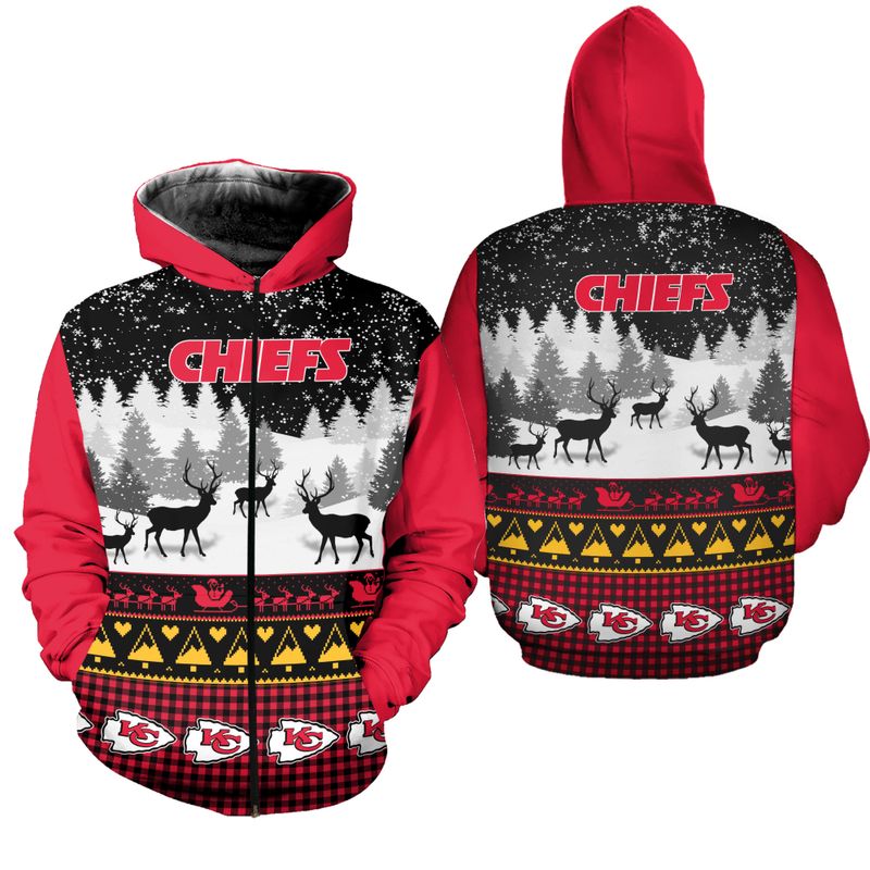 Kansas City Chiefs Christmas Reindeer Hoodie Zip Up Hoodie Nla036010