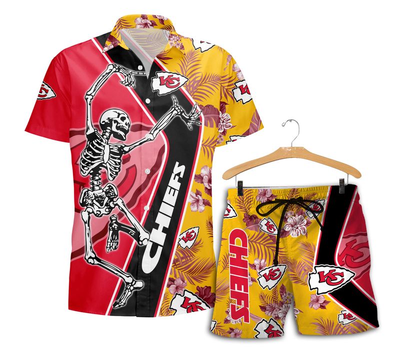 Kansas City Chiefs Dancing Skull Hawaii Shirt and Shorts Summer NEW042010