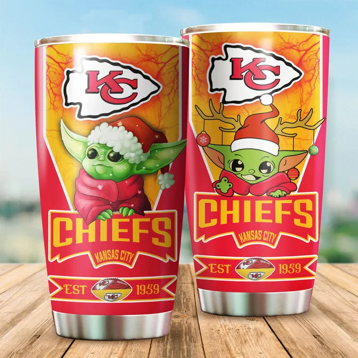 Kansas City Chiefs Festive Baby Yoda Tumbler