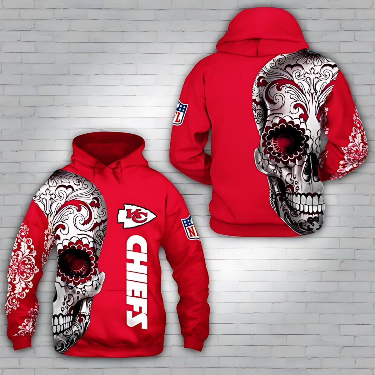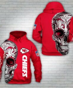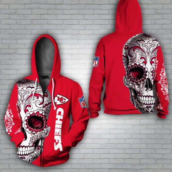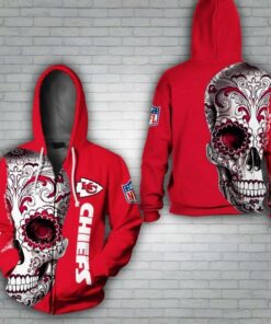 Kansas City Chiefs Floral Skull 3d Zip Hoodie Sizes S-5xl DM376