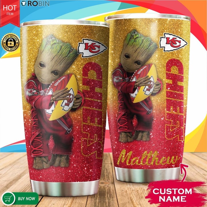 Kansas City Chiefs Groot Glitter Personalized Tumbler