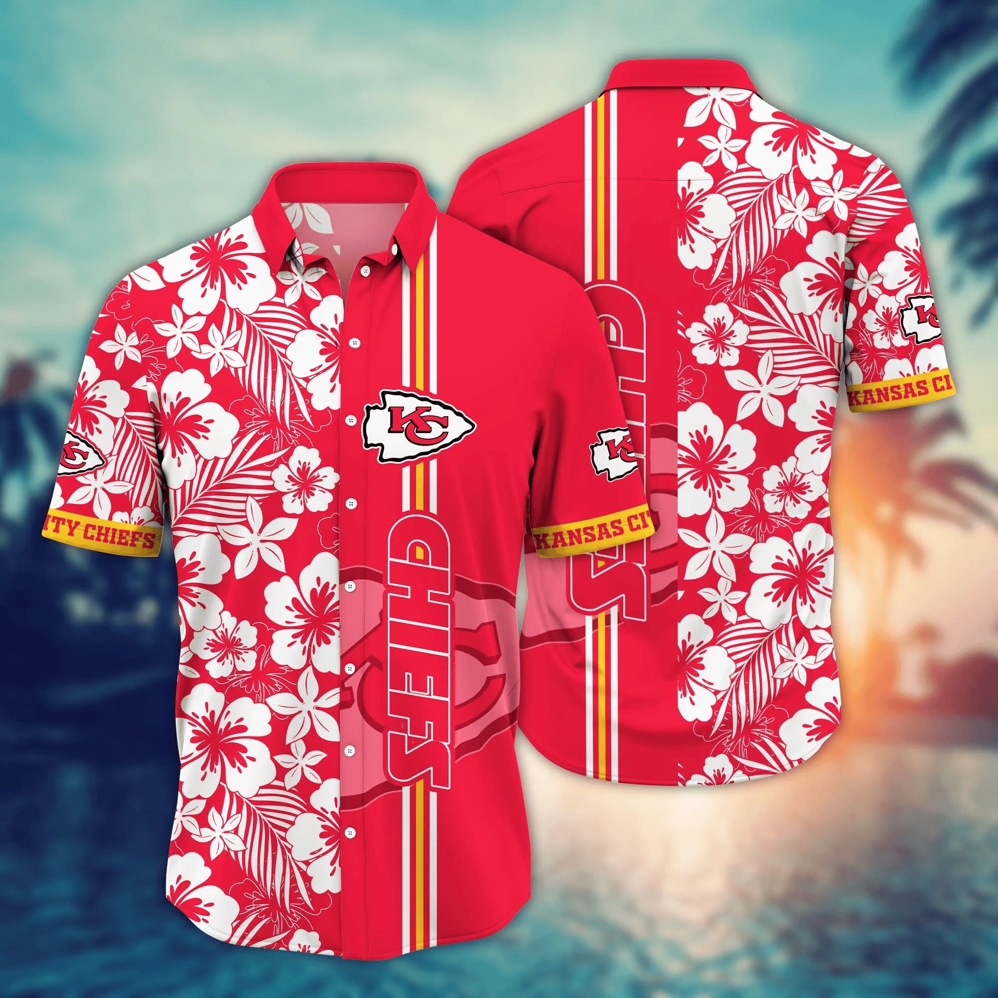 Kansas City Chiefs Red Hibiscus White Flowers Hawaiian Shirt