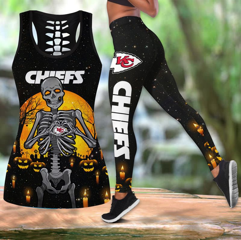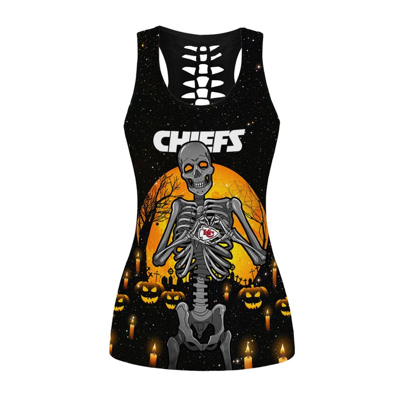 Kansas City Chiefs Skull Halloween Limited Edition All Over Print Leggings Tank Top Combo New046410