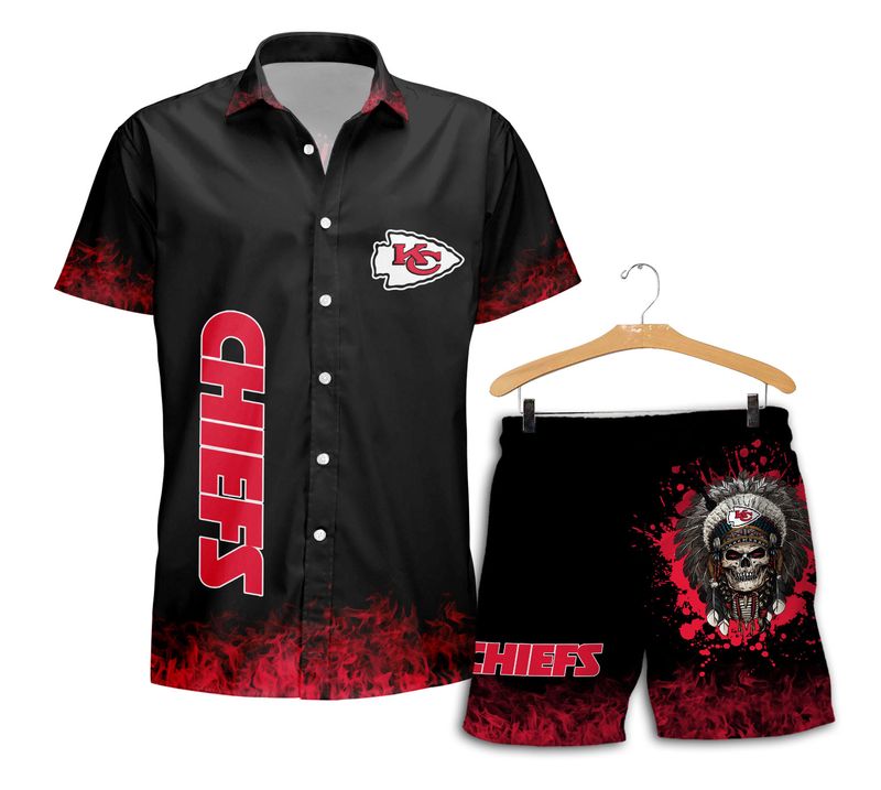 Kansas City Chiefs Skull Hawaii Shirt and Shorts Summer NEW021310