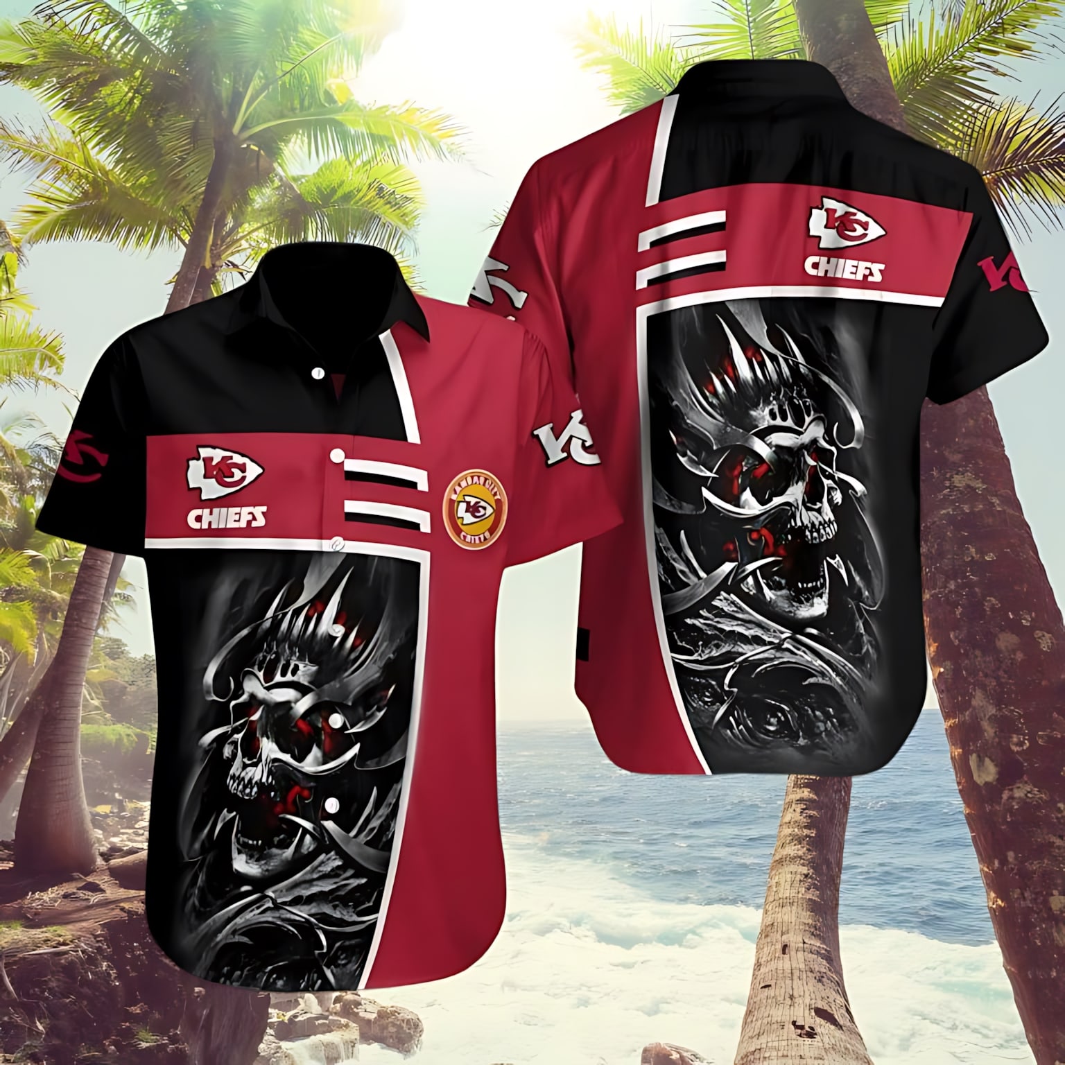 Kansas City Chiefs Skull Warrior Artwork Hawaiian Shirt