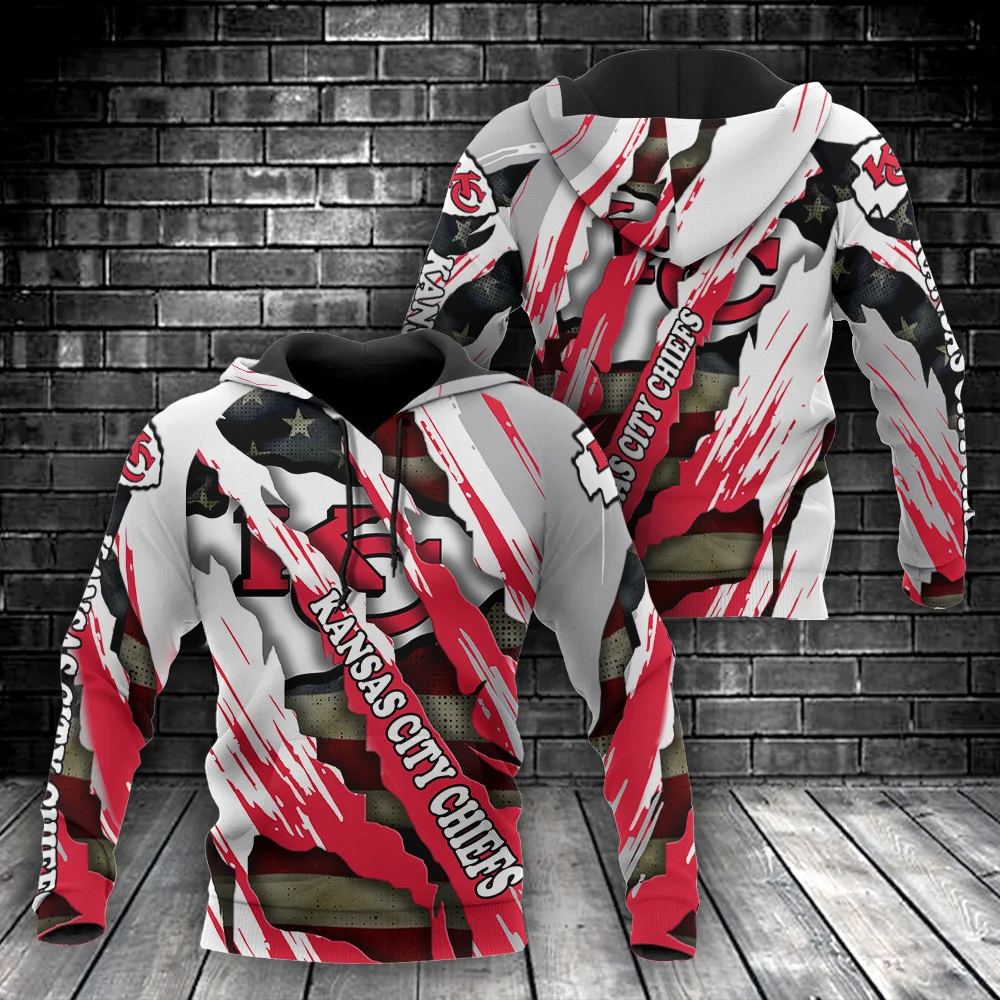 Kansas City Chiefs Torn Camo 3D Hoodie