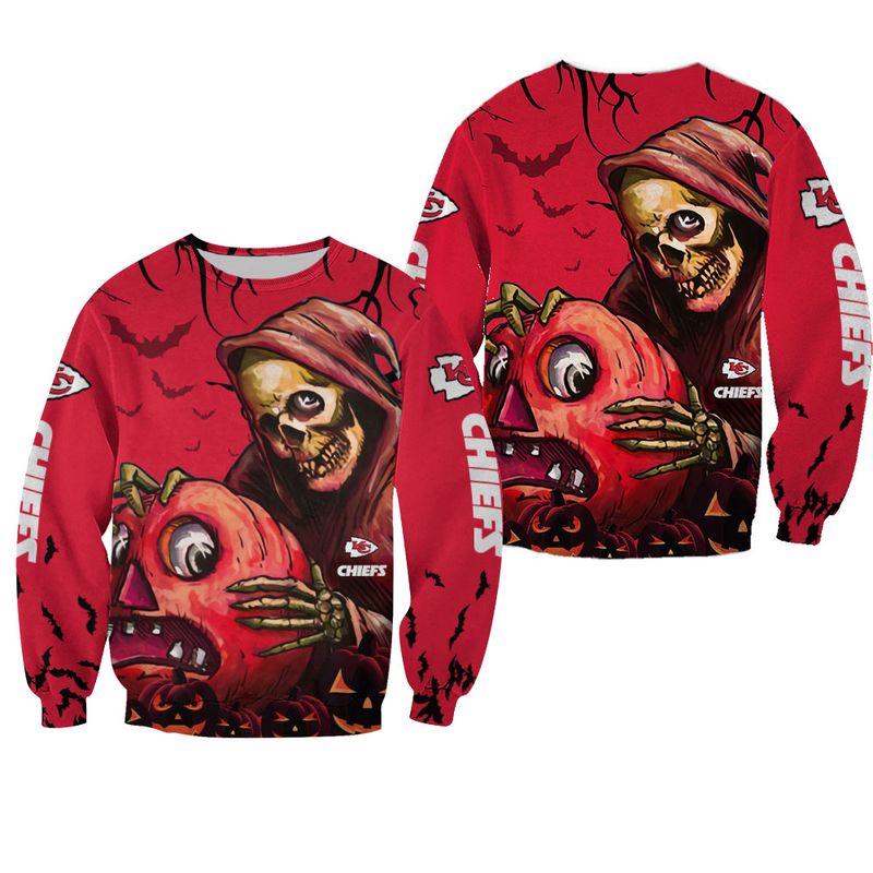 NFL Kansas City Chiefs Death Skull Pumpkin Halloween Limited Edition Sweatshirt NLA023110
