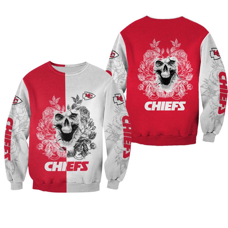 NFL Kansas City Chiefs Skull Limited Edition All Over Print Sweatshirt Size NLA000810