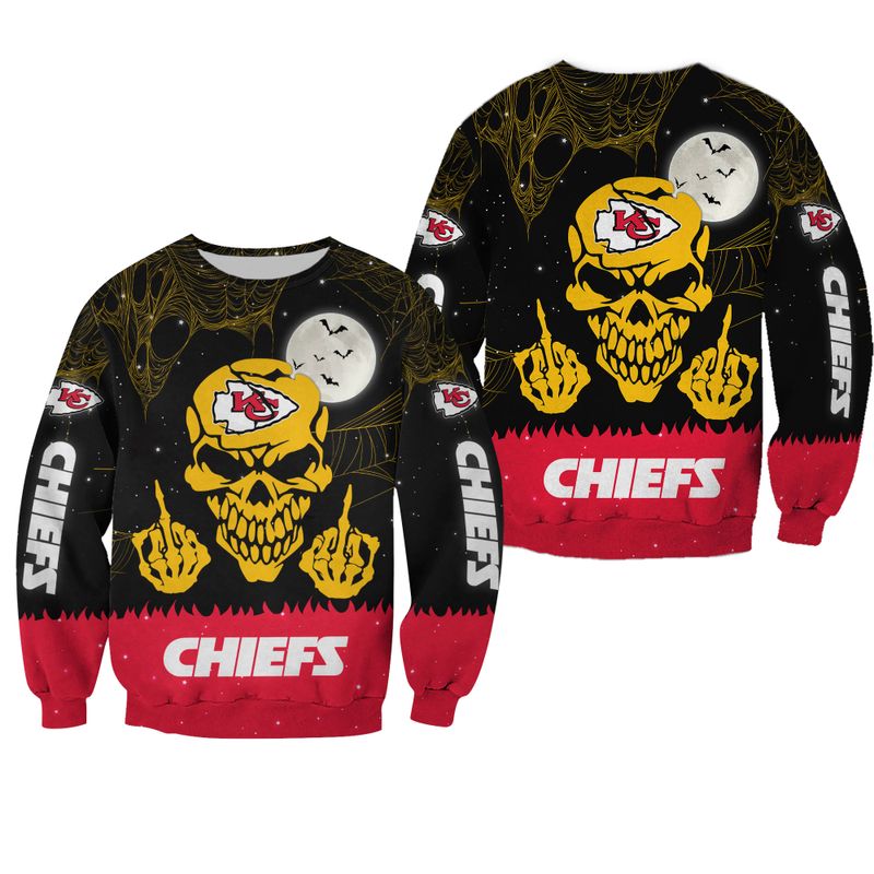 NFL Kansas City Chiefs Skull with Middle Fingers Halloween Edition Sweatshirt NEW047110